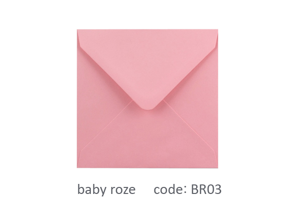 Deze baby roze envelop is geschikt voor de vierkante geboortekaartjes voor meisjes. De afmeting de envelop is 14 bij 14 cm, waardoor een vierkant geboortekaartje er goed inpast. De envelop is van 120grs papier gemaakt en dus lekker stevig. De envelop heeft een gom/lijm sluiting.
